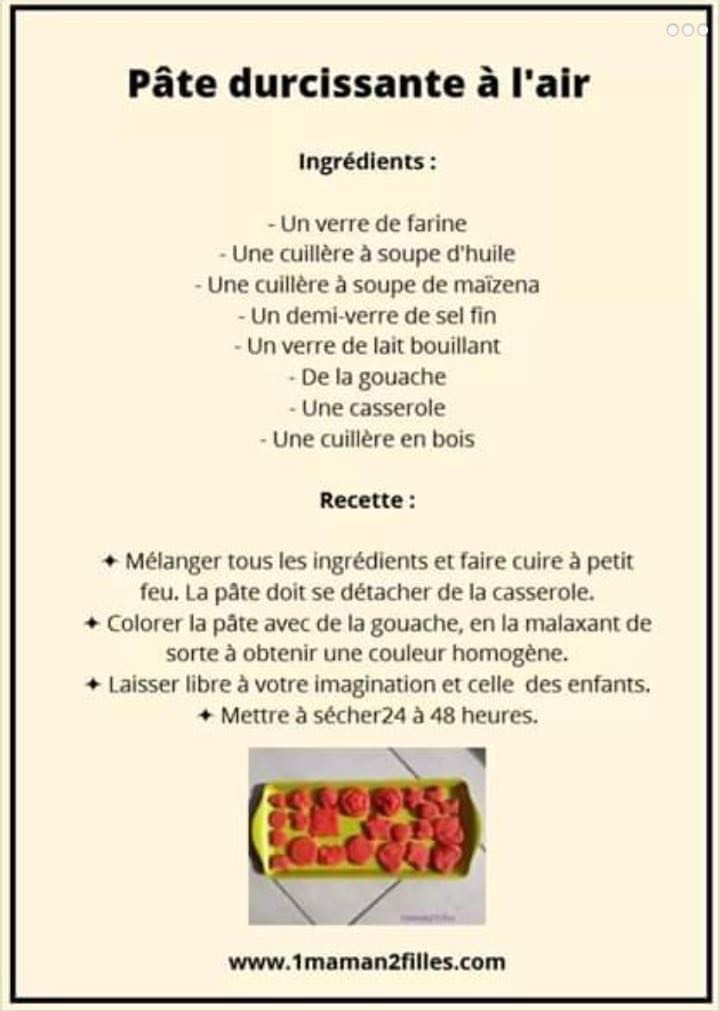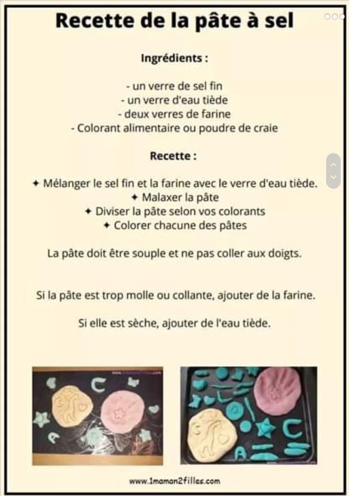 Des recettes…. Publié parfabuleuxmouvement24 mars 20201 avril 2020Publié dansJ'ai envie de bricoler, manipuler... Pâte à modeler Pâte à sel Peinture gonflante Slime C’est par là. Sable magique C’est par ici. Partager : Cliquer pour partager sur X(ouvre dans une nouvelle fenêtre) X Cliquez pour partager sur Facebook(ouvre dans une nouvelle fenêtre) Facebook J’aime chargement… Articles similaires Publié par fabuleuxmouvement Psychomotricienne Voir plus d’articles