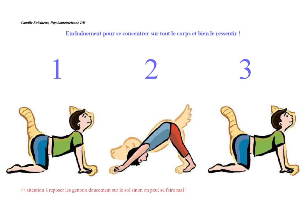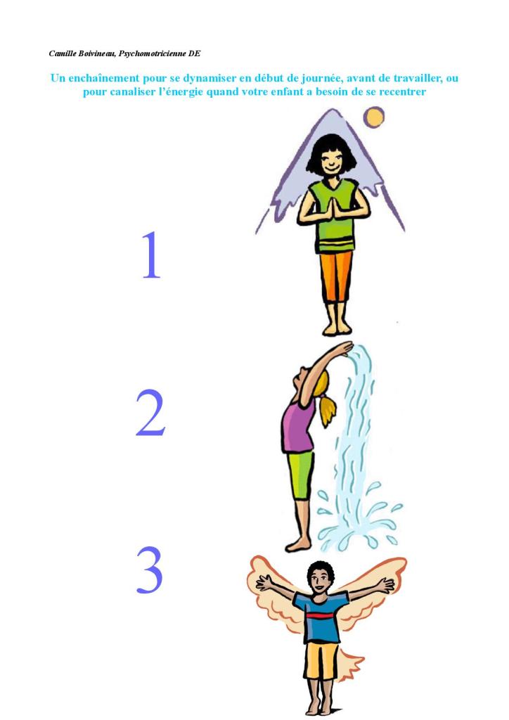 - mains jointes devant le cœur : essayer de monter les bras en haut et de les ramener au centre
