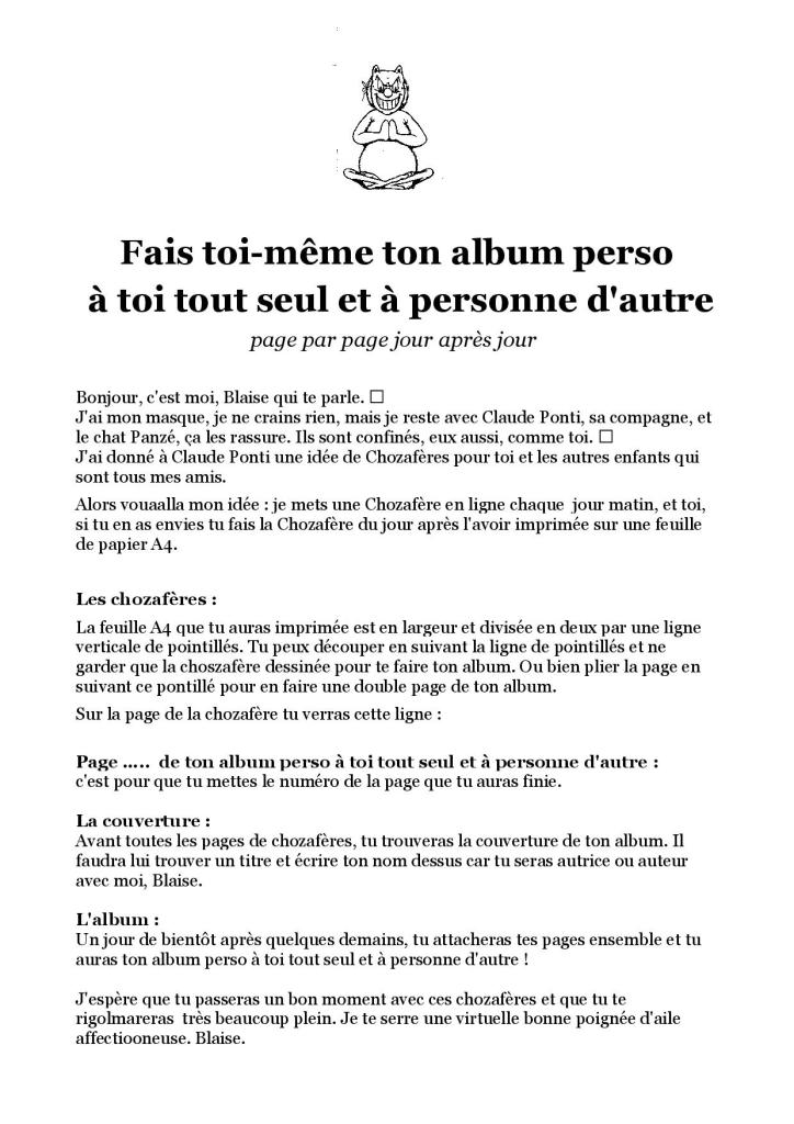 Mon album de Claude Ponti Publié parfabuleuxmouvement30 mars 2020Publié dansNon classé Joli album gratuit pour le confinement. Partager : Cliquer pour partager sur X(ouvre dans une nouvelle fenêtre) X Cliquez pour partager sur Facebook(ouvre dans une nouvelle fenêtre) Facebook J’aime chargement… Articles similaires Publié par fabuleuxmouvement Psychomotricienne Voir plus d’articles
